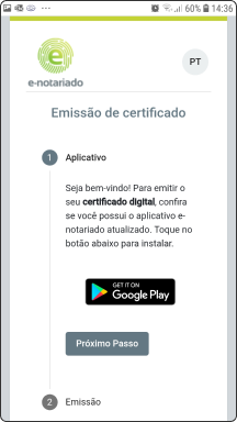 Para baixar o aplicativo, procure por “e-notariado” ou acesso um destes links:Que o Cartório Blasco libere a ativação do certificado;